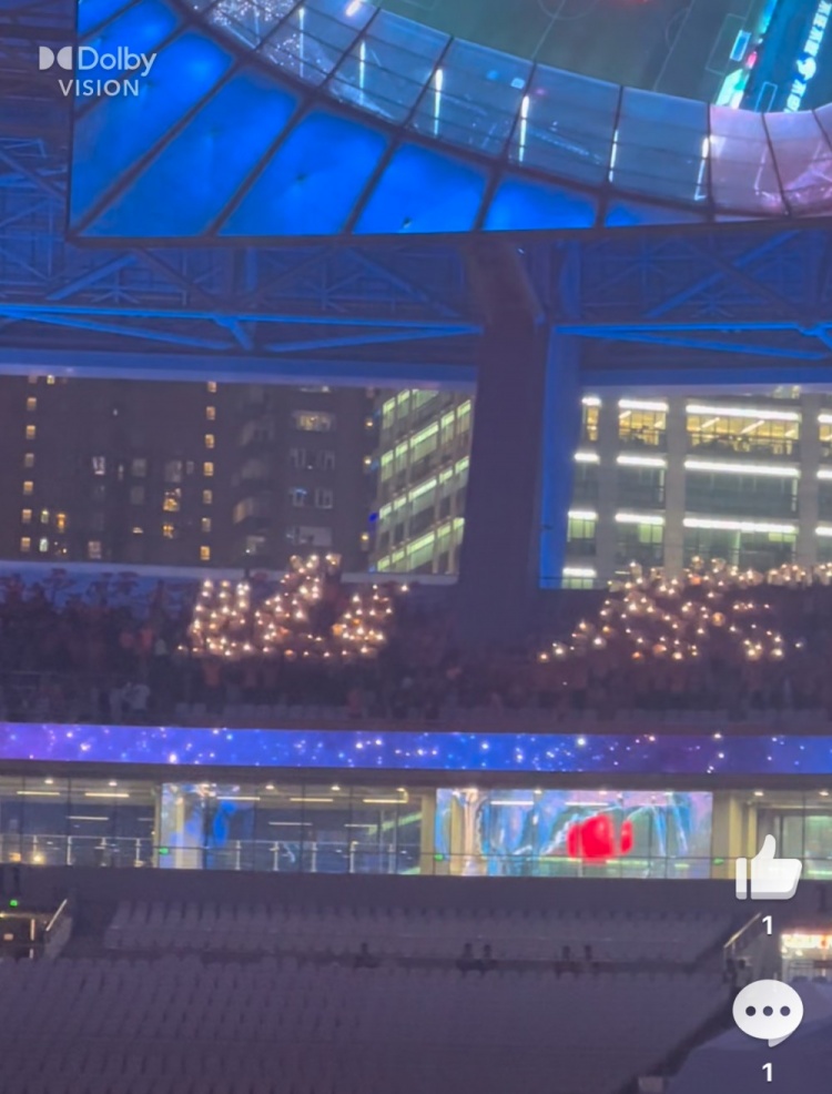记者杨翼在社媒晒出视频,显示远征客场的泰山球迷用闪光灯拼出“山东”二字支持球队。杨翼为视频配文写道:“山东球迷很有创意啊,在客队看台区用闪光灯拼出来‘山东’两个字。”