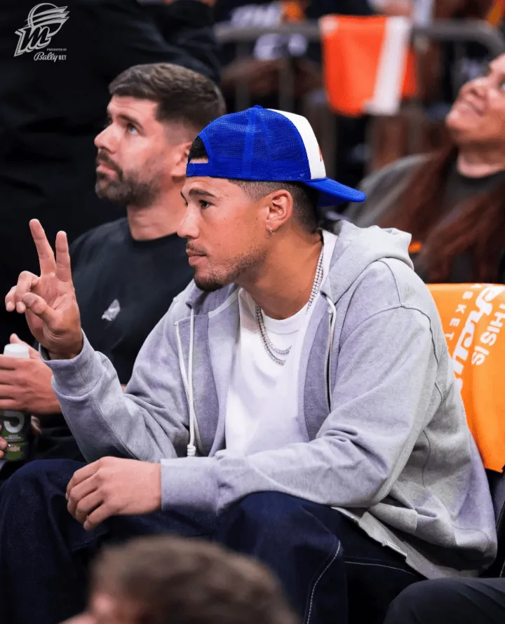 虎扑09月03日讯 今日,太阳官方INS更新社媒,晒出队内球员德文-布克观战WNBA的照片,并配文: